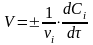 Часто швидкість процесу V виражають зміною кількості dNи вихідної речовини або його концентрації dCи, кількості або концентрації продукту dNп і dCп, а також ступеня перетворення β за час dτ: