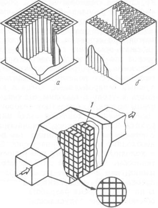 Катализатор может быть порошкообразным материалом различной дисперсности или закрепляться на поверхности металлических или керамических носителей. Для удобства изготавливают блоки объемом 1 м3 (рис. 3), которые послойно соединяют в реакторе (рис. 4).