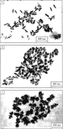 При увеличении продолжительности гидролиза от 5 до 10 и 20 сут при прочих одинаковых стандартных (см. выше) условиях наблюдается рост частиц с последующей их агрегацией и изменением морфологии (рис. 10).[3,949]