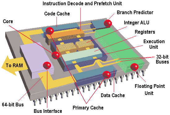 Предсказатель ветвлений: Модуль предсказания ветвлений пытается угадать, какая последовательность будет выполняться каждый раз когда программа содержит условный переход, так чтобы устройства предварительной выборки и декодирования получали бы инструкции готовыми предварительно.