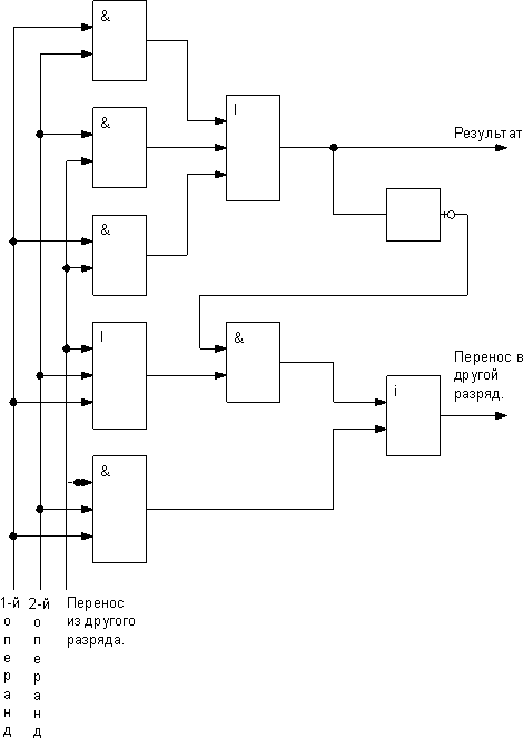 Рис. 7. Реализация одноразрядного сумматора с переносом знака.