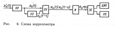 Типовая структура коррелометра, в котором используется усреднение по времени, представлена на рис. 6. При этом реализуется следующий алгоритм: