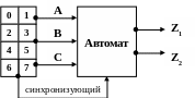 В нашем случае, для формирования последовательности выходных сигналов Y = {Z1, Z2} при соответствующей последовательности входных сигналов (A, B, C)i, можно использовать автомат с жесткой логикой и законом функционирования автомата Мили: