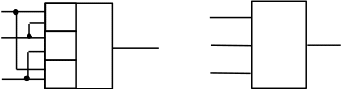 Такая запись означает, что для получения из неё первоначальной минимальной ДНФ надо взять по коньюкции второго ранга по каждой переменной и объединить их знаком дизъюнкции. На рисунке 3 показана схема мажоритарного элемента на три входа и его условное обозначение.