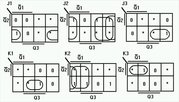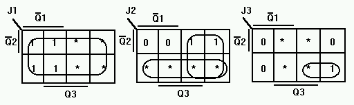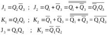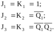 J1=K1=1 ; J2=K2=Q1 ; J3=K3=Q1Q2.