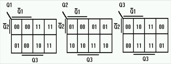 Рисунок 16 - Прикладные таблицы и карты Карно информационных входов JK-триггеров счетчика с N=3