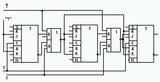 На рисунке 15 представлена схема счетчика, построенного по полученным уравнениям.