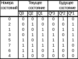 Исходными данными для синтеза такого счетчика является порядок перехода счетчика из одного состояния в другое после передачи очередного входного сигнала.