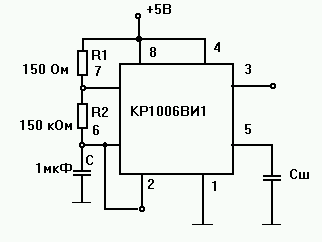 При расчете RC - цепи одновибратора следует учитывать, что низкий уровень напряжения запуска не должен сохраняться дольше времени 1,1RC. Нарушение этого условия приводит к тому, что через время tзап таймер начнет генерировать импульсы произвольной формы.