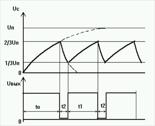 Uc=2/3Uп=1/3Uп+2/3Uп(1 - e-t/((R1+R2)C)).
