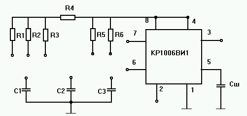С1=1мкФ; С2=0,25мкФ; С3=0,15мкФ; Сш=0,01мкФ.