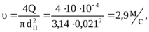 []- допускаемая скорость движения жидкости,