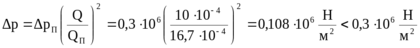 Для выбранного типоразмера гидроаппарата определяется действительная потеря давления при прохождении расчетного расхода через гидроаппарат: