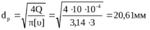 Расчётное значение внутреннего диаметра трубы