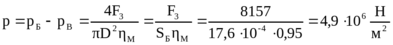 - давление в нагнетательной полости гидроцилиндра,