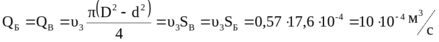 где Q- объёмный расход жидкости в трубопроводе,