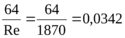 Т.к. во всасывающем трубопроводе ламинарный режим движения жидкости, то