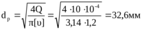 где Q - расчётный объёмный расход жидкости в трубопроводе,