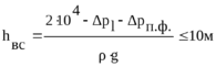 Уравнение равновесия давлений во всасывающем трубопроводе-