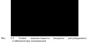 Если ток базы регулирующего транзистора VT1 велик, в стабилизатор вводят дополнительный усилитель постоянного тока. Одна из схем такого стабилизатора приведена на рис. 1.3. Напряжение, подаваемое с движка потенциометра R3 на базу транзистора VT2, на котором выполнен дополнительный усилитель постоянного тока, называется напряжением обратной связи (UOC). Из рисунка видно, что UOC=UCТ+ UЭБ. Ток, протекающий через потенциометр R3, не должен превышать 10...15 мА. Сопротивление резистора R1 обычно составляет несколько килоом.