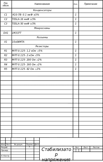 - схема электрическая принципиальная и перечень элементов стабилизатора напряжения;