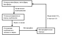Большой (геологический) кругооборот углерода можно представить в виде схемы (рис. 2. 6.).