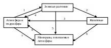 | Усваивается растениями за год | 6481012 | 601012 | 86,51012 |