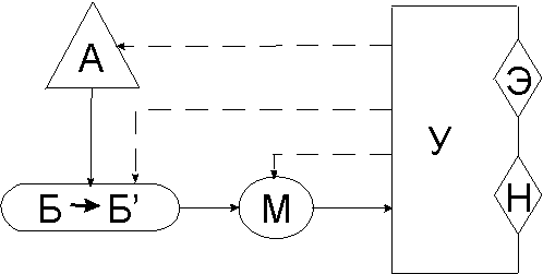 С помощью системы мониторинга (М) получается "фотография" этого измененного, а по возможности и первоначального состояния, производится обобщение данных, анализ и оценка фактического и прогнозируемого состояния. Эта информация передается в блок управления (У) принятия решения (см. рис. 1). На основании этой информации в зависимости от уровня научно- технических разработок (Н) и экономических возможностей(Э), с учетом эколого-экономических оценок; принимаются меры по ограничению или прекращению антропогенных воздействий, по профилактическому укреплению или последующему "лечению" элемента биосферы. Также возможна комбинация перечисленных подходов. Совершенствуется и система мониторинга (указанные действия показаны на схеме штриховыми линиями).