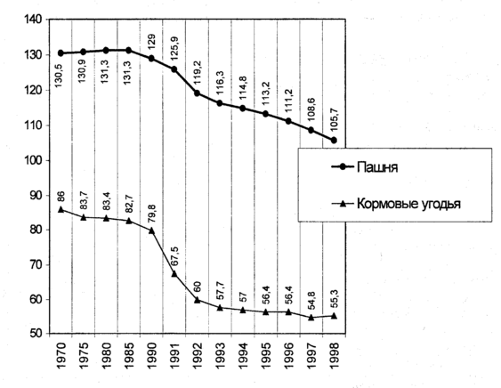 Итак, из-за отсутствия средств и изношенности материально-технической базы, на большей части площадей, занятых сельскохозяйственными предприятиями, идет активный процесс истощения почв. В Нечерноземье истощенные земли просто забрасываются в залежь, так как становятся непригодными для сельскохозяйственного использования. В черноземной полосе дегумификация почв - повсеместный прогрессирующий процесс, опасность которого, однако, скрыта по причине высокого естественного плодородия почв.
