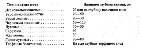 Глубина снятия плодородных слоев почв регламентируется ГОСТ 17.5.3.06—85. Нормы снятия плодородного слоя почв приведены ниже.