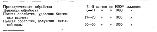 Даже после относительно полной вторичной обработки, сток еще, конечно, сильно загрязнен биогенными веществами и непригоден для прямого использования человеком. В то время как технология вторичной обработки достаточно развита, третичная обработка находится еще главным образом на стадии экспериментальных установок. Большинство городов все еще стремится к достижению адекватной вторичной обработки, тогда как им следовало бы добиваться полного восстановления путем третичной обработки. Тысячи мелких городов и пригородных районов не производят вообще никакой обработки или в лучшем случае производят только грубую первичную обработку. Как указывалось выше, отходы индустриализованного сельского хозяйства почти не обрабатываются. Человек рассчитывает, что третичную обработку произведет природа, и она могла бы делать это очень эффективно, если предоставить ей достаточно места. Осложнения начинаются после того, как пространство, необходимое для естественной обработки отходов, человек застроит городами, сельскохозяйственными и промышленными предприятиями, которые производят дополнительные загрязнения. В результате ему приходится прибегнуть к искусственной третичной обработке, которая в несколько раз дороже обычной вторичной обработки. Стефенс и Вайнбергер (1968) приводят сравнительную стоимость разных стадий обработки отходов: