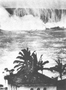 Подобная же катастрофа произошла 1 апреля 1946 г. на Гавайях в Тихом океане. В северной части океана, на расстоянии 3600 км. От островов произошло сильное подводное землетрясение, волны со скоростью 800 км / ч устремились в океан и через 4.5 часа достигли Гонолулу, столицы архипелага. Первая волна была высотой всего 5 метров, вторая - 15. Утонули 150 человек. В Чили, отстоящем от эпицентра этого землетрясения на 14000 км, уровень воды поднялся на 1,6 м.
