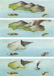 Ещё более тяжкие последствия имело уже упоминавшееся извержение вулкана Кракатау в Индонезии. Безлюдный остров площадью всего 33 кв. км, состоявший из трёх старых вулканических гор, в ночь с 26 на 27 августа 1883 г. потрясли взрывы огромной мощности.