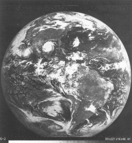 Глаз тайфуна» над Атлантикой, фото метеоспутника с высоты 5000 км.