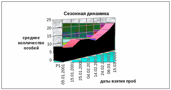 Сезонная динамика, представленная на рисунке 4.2, связана прежде всего с климатическими условиями среды, нежели с антропогенной нагрузкой.