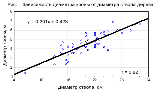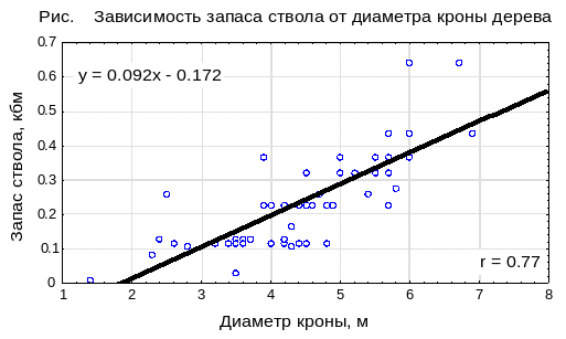 Рисунок 3. Зависимость запаса от диаметра ствола дерева