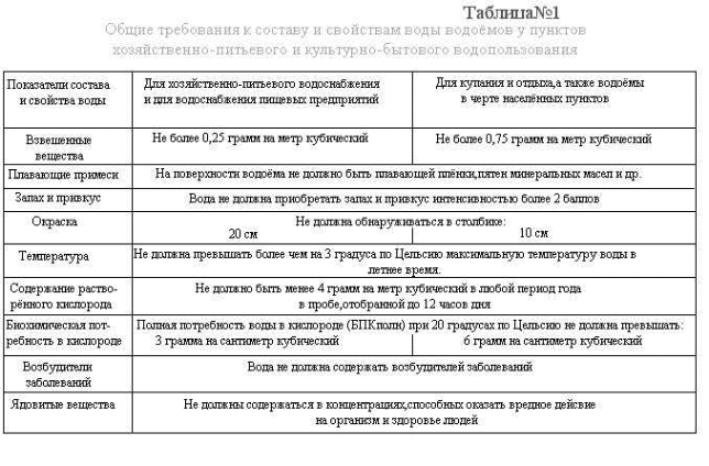 Питьевая вода должна быть безвредна для человека, иметь хорошие органолептические свойства, которые характеризуются интенсивностью допустимого изменения запаха, вкуса и цвета. Концентрация химических веществ, попадающих в источники со стоками, не должна превышать допустимых норм, установленных Министерством здравоохранения РФ для источников централизованного водоснабжения.