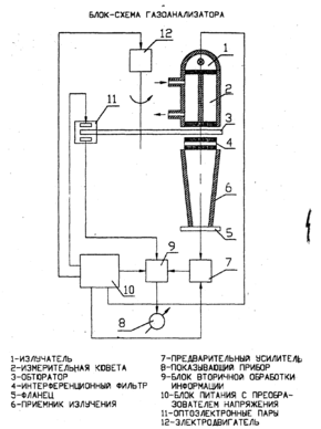 Для определения содержания окиси углерода и суммы углеводородов в отработавших газах автомобилей следует применять газоанализаторы непрерывного действия, работающие на принципе инфракрасной спектроскопии, со следующими метрологическими характеристиками: