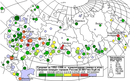 а семь лет выбросы свинца от промышленных источников снизились на 60% вследствие сокращения производства и закрытия многих предприятий. Резкое снижение промышленных выбросов не сопровождается снижением выбросов автотранспорта. Средние концентрации свинца снизились только на 41%. Различие в степени снижения выбросов и концентраций свинца можно объяснить неполным учетом выбросов от автомобилей в предыдущие годы; в настоящее время увеличилось количество автомобилей и интенсивность их движения.