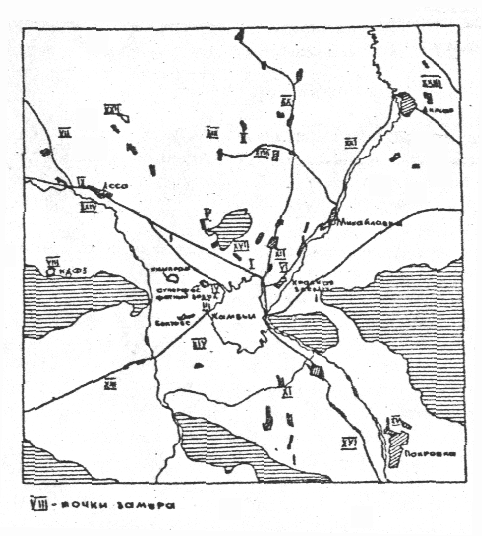 Размещение точек режимных наблюдений за загрязнением почв фтором в окрестностях города Тараза.