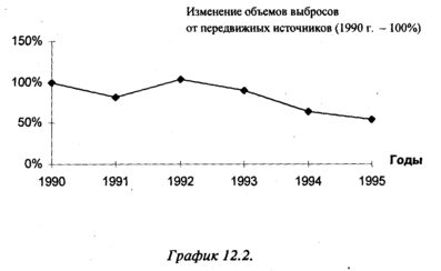 К выбросам от стационарных источников нужно прибавить выбросы от транспорта, в основном автомобильного, который дает 95% всех выбросов от передвижных источников. Объем этих загрязнений (в отличие от промышленных) до последнего времени не имел устойчивой тенденции к снижению.
