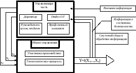 Состояние объектов управления определяется входными параметрами - факторами, воздействующими на безопасность трудовой деятельности (X1,...,Xn). К ним можно отнести безопасность конструкций, безопасность технологических процессов, гигиенические параметры производственной среды и социально-психологические факторы. Так как реальные производственные условия не являются абсолютно безопасными, то выходной характеристикой системы служит некоторый уровень безопасности (Y=f(X1,...,Xn)). Выходы объектов управления связаны через систему сбора и обработки информации со входами управляющей части. Информация о выявленных в процессе контроля отклонениях от нормальной безопасности труда, потенциально опасных факторах, поступает в управляющий орган для анализа и принятия решений, направленных на регулирование управляющих параметров входов объекта управления. Таким образом СУБТ действуют по принципу обратной связи и при этом осуществляется замкнутое автономное управление. СУБТ - элемент системы управления более высокого порядка (министерство народного хозяйства). Поэтому на входе управляющей системы поступает внешняя информация: законодательная, директивная, нормативная.