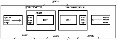 Рабочие места с ВДТ и ПЭВМ по отношению к световым проектам должны располагаться так, чтобы естественный свет падал сбоку, преимущественно слева.