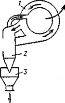 Рисунок 1 - Динамический пылеуловитель: 1 «улитка»; 2 циклон; 3 пылесборный бункер.