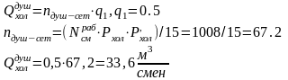 г) расход воды на пользование душем (душем пользуются в течении часа после смены) в холодных цехах.