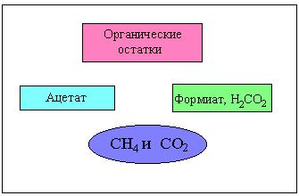 Из данных табл. 1 видно, что болота, рисовые поля и животные вносят доминирующий вклад в образование общего потока в атмосферу. Природа образования метана в таких источниках, как болота, озера, рисовые поля, жвачные животные, насекомые, свалки, примерно одинакова - ферментативная переработка клетчатки. Этот процесс можно представить следующей схемой:66