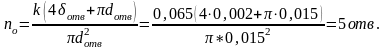 Определяем диаметр и количество отверстий. Принимаем dотв=0,006 м, тогда количество отверстий: