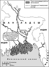 Рис. 3. Возможное затопление территории Бангладеш в случае подъема уровня