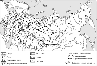 Рис. 4. Последствия глобального потепления на территории бывшего СССР (по А.А. Величко)