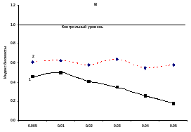 | Контроль 0.02 | 0.192 0.235 | 0.016 0.019 | 0.192 0.282* | 0.016 0.023 | 0.023 0.033* | 0.001 0.001 | 0.023 0.053* | 0.001 0.001 |